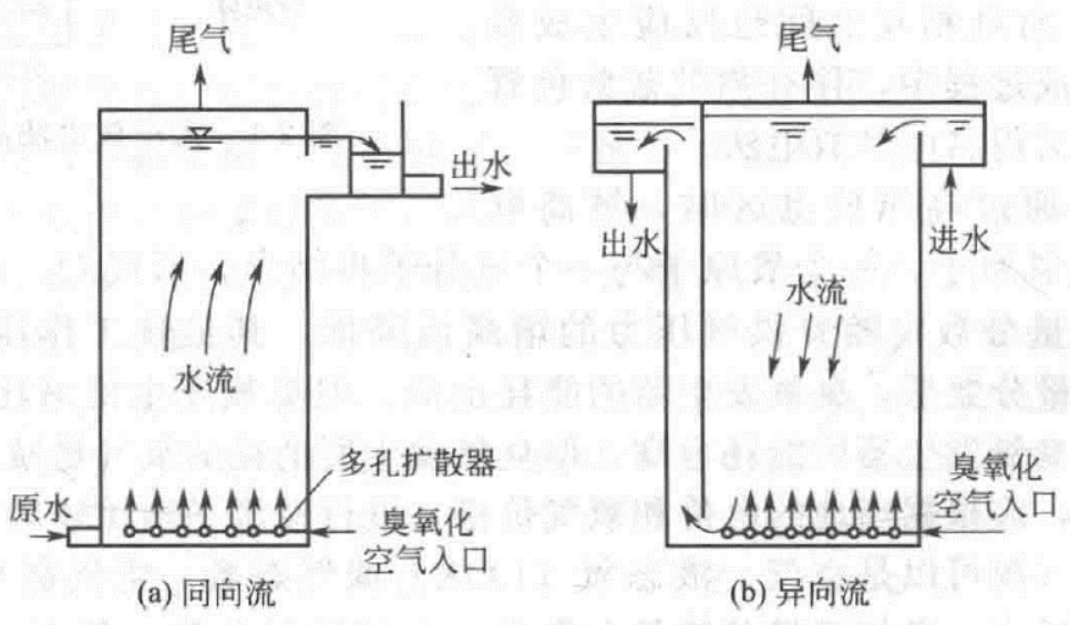 臭氧接觸器有同向流臭氧接觸器和異向流臭氧接觸器。前者氧利用率低,一般為75%。