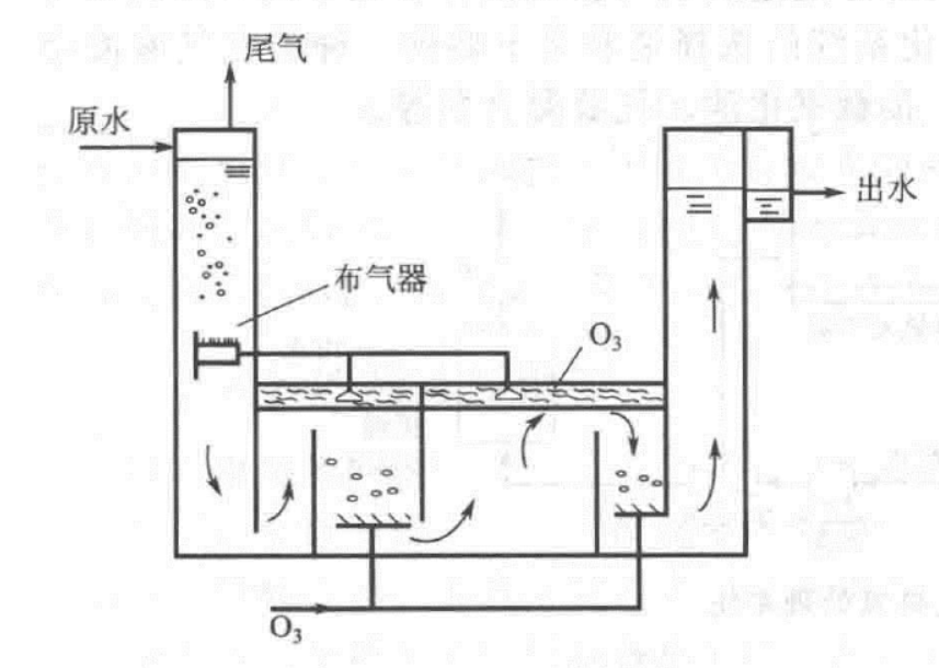 當原水污染較輕或只是氧化鐵、錳時,可用單格接觸氧化池。池底部設置多孔擴散布氣器,將臭氧化空氣分散為細氣泡,接觸時間為4min以上。